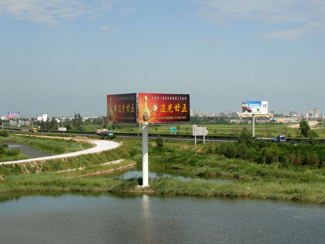 该广告牌位于京哈高速公路北京方向K533+350m处,丹锡高速、阜营高速与京哈高速三条高速公路互通立交区内,立柱柱高14米,3面结构,每面规格为宽18米,高6米,地理位置巨佳,车流量大,视野开阔无遮挡,牌面发布面积大,宣传效果好,是商家宣传和树立品牌的绝佳选择。